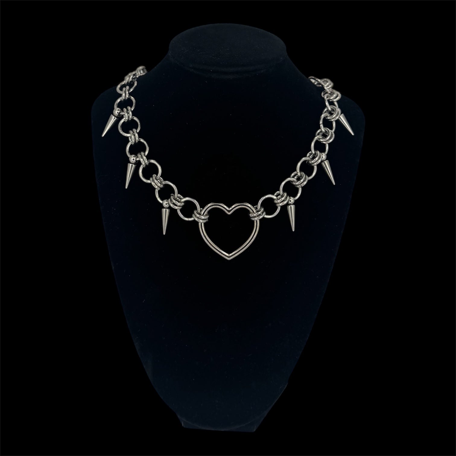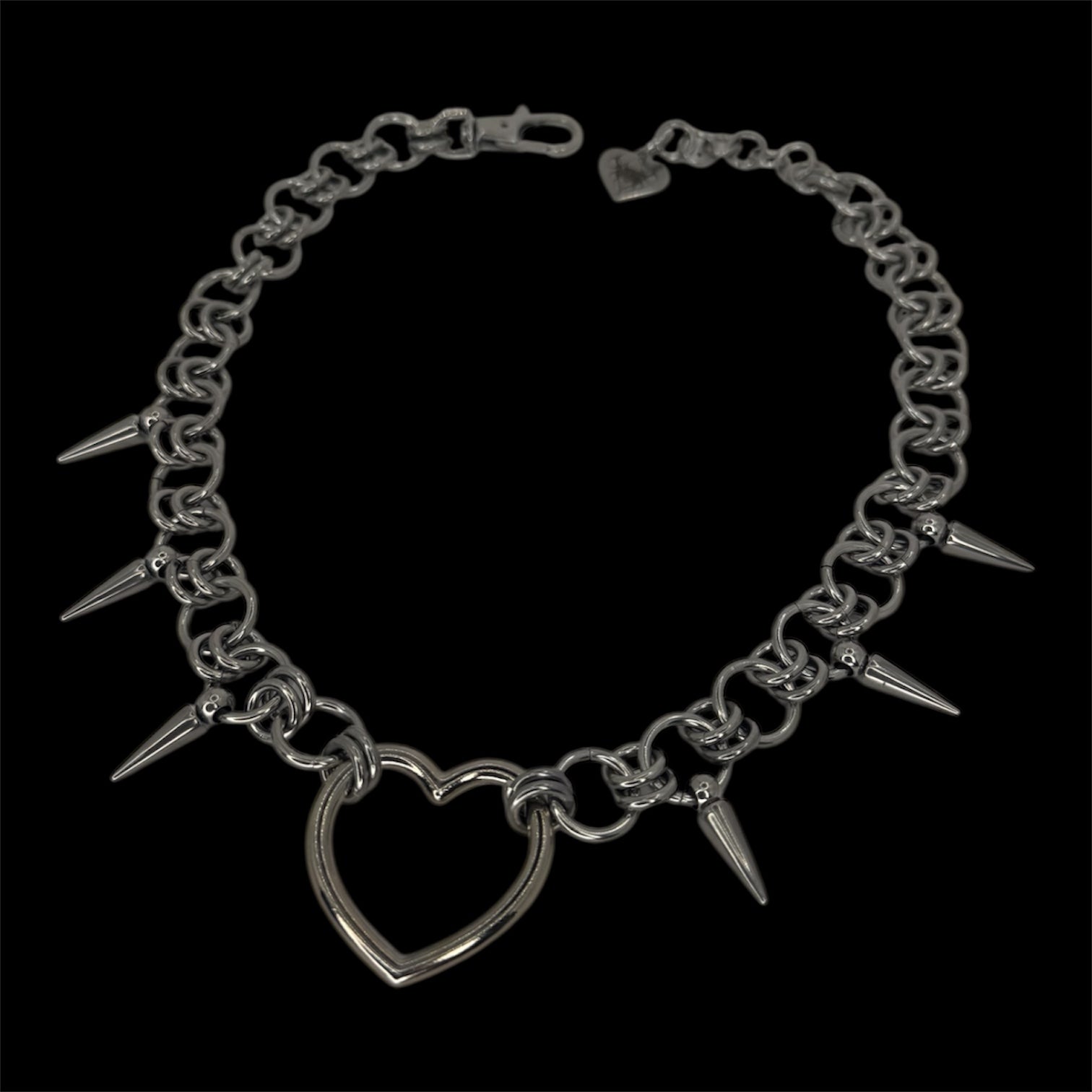 DETAILS: 100% Stainless steel chain with metal heart pendant and steel spikes.Β